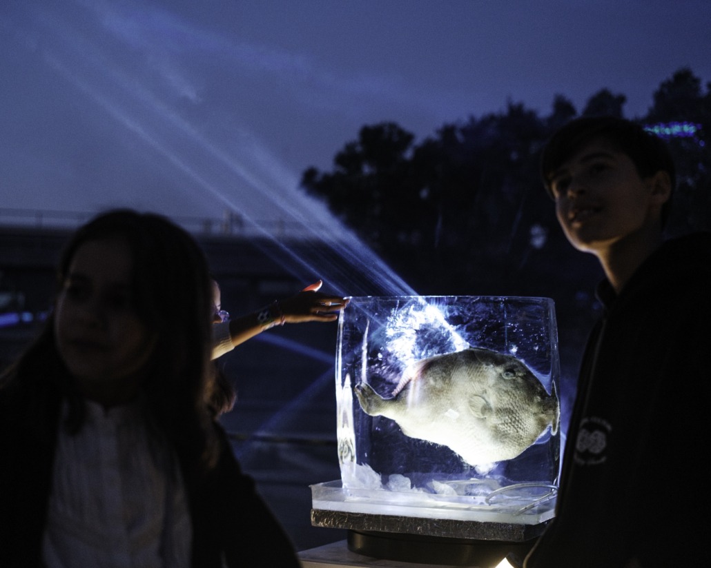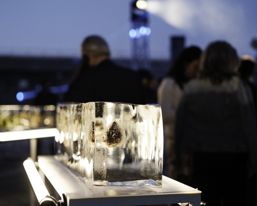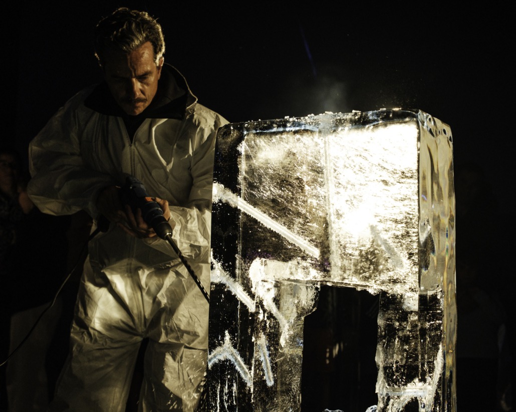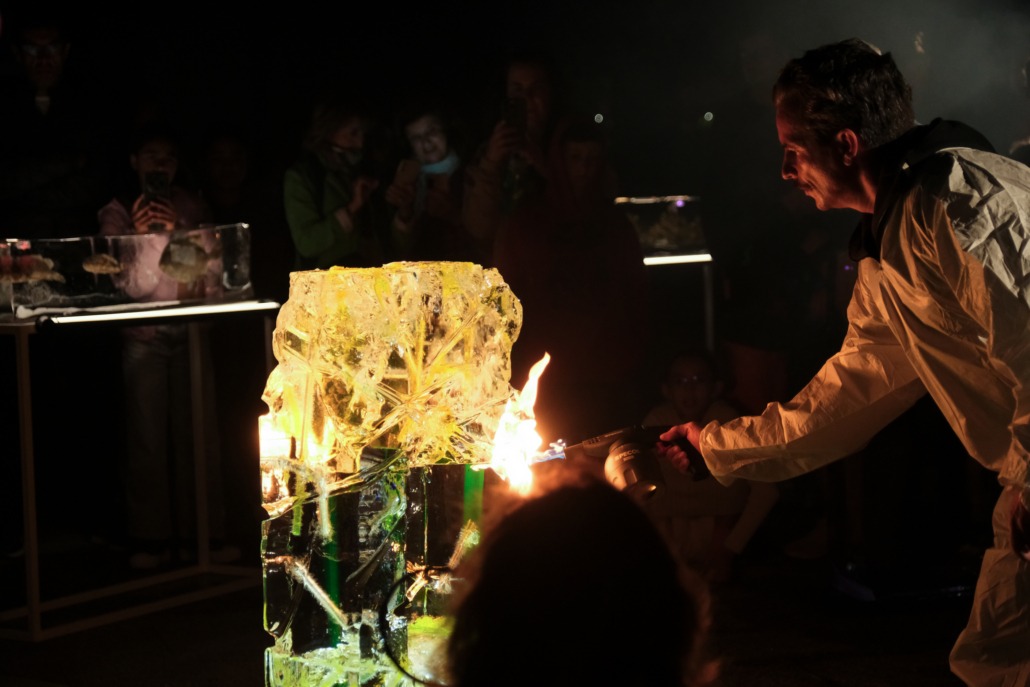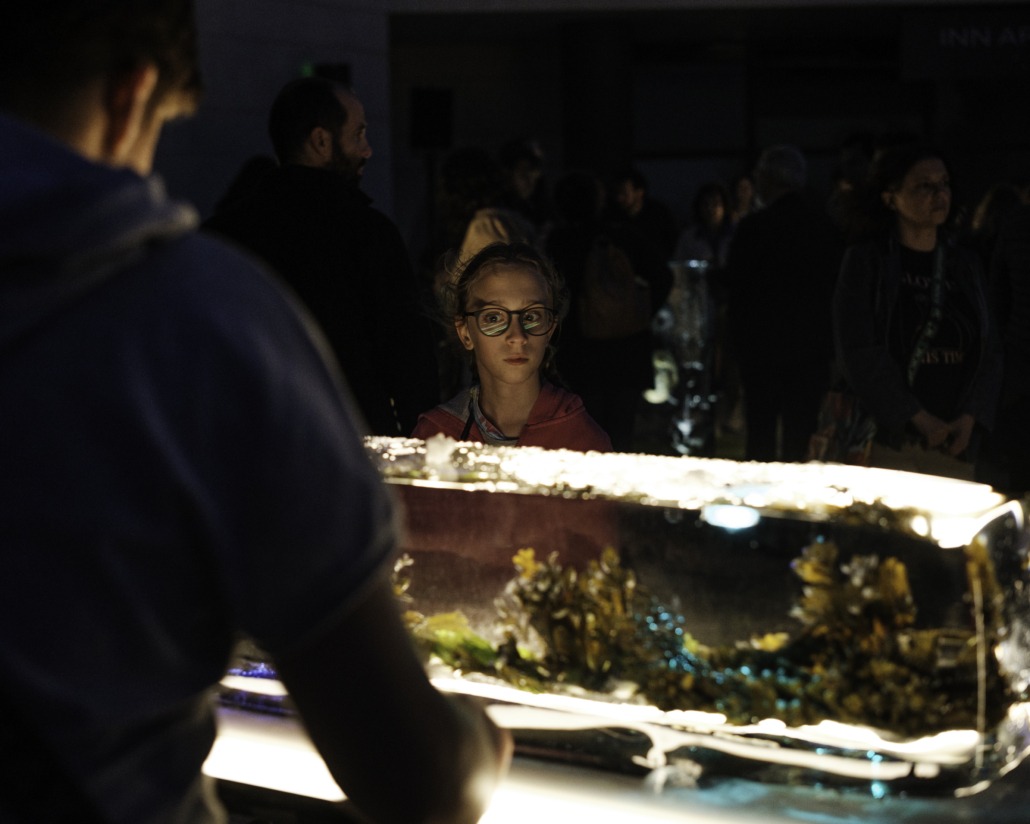 - Technique / Materials: AV installation / MacBook Pro, Avolites DMX interface, 4 laser projectors Laser World, 12 LED Lights, smoke machine, rotating plate, Acrilyc structures, fish, algae, aquatic plants, ice.